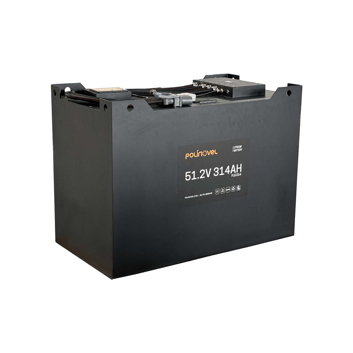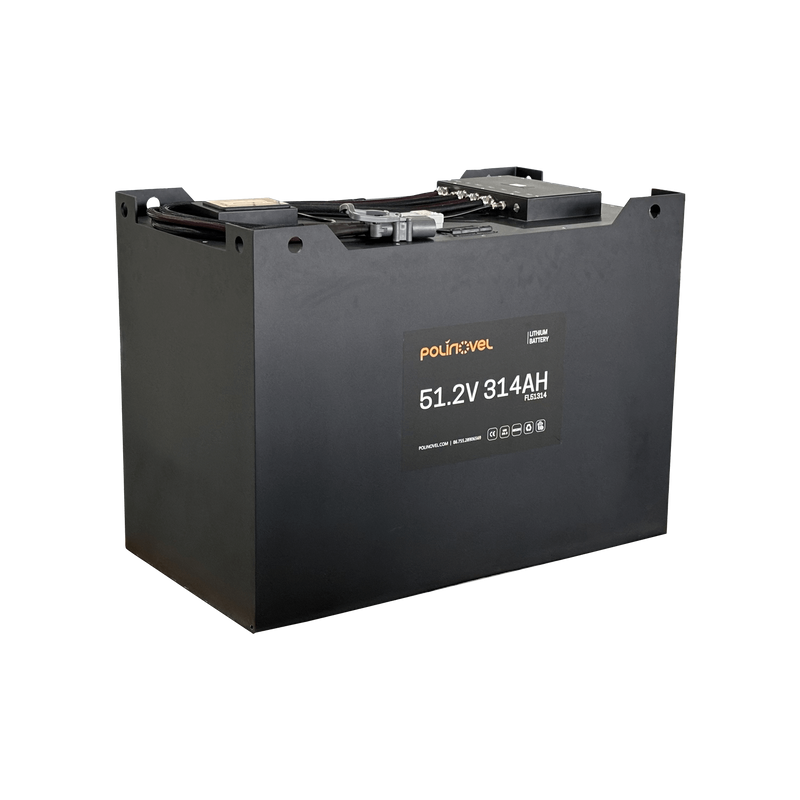 This 48V 314Ah LiFePO4 forklift battery provides reliable power, balanced capacity, and efficient charging for daily material handling tasks. It is designed for demanding material handling tasks, supporting narrow aisle forklifts, counterbalance forklifts, and other warehouse vehicles requiring high-capacity, long-lasting power.
